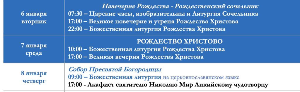 АНОНС: РАСПИСАНИЕ РОЖДЕСТВЕНСКИХ БОГОСЛУЖЕНИЙ