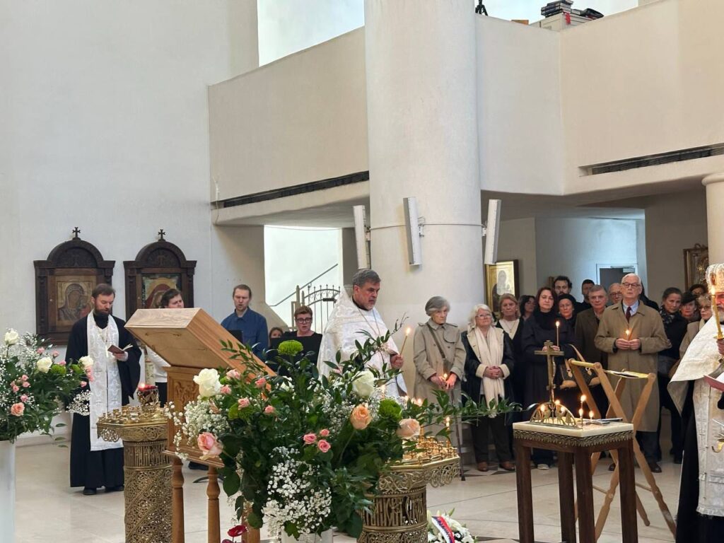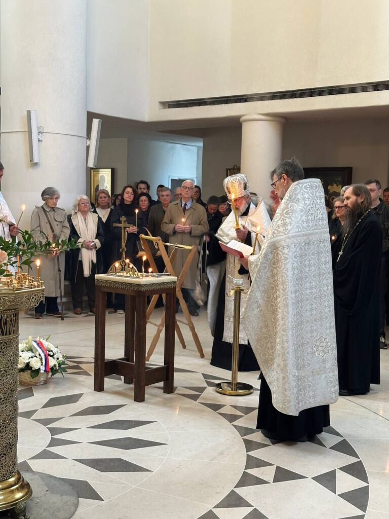 По благословению митрополита Корсунского и Западноевропейского Марка, Патриаршего экзарха Западной Европы, заупокойное богослужение совершил протоиерей Николай Ребиндер, настоятель Трехсвятительского храма в Париже.